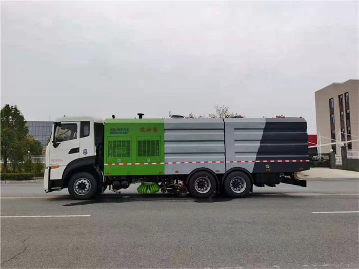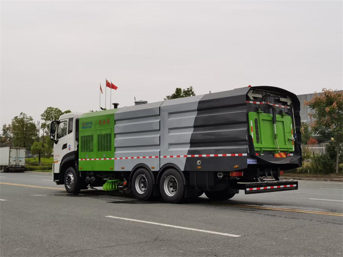 整車配置:本洗掃車采用東風(fēng)天錦型國六二類底盤改裝,加裝副發(fā)動機(jī)、風(fēng)機(jī)、高壓水泵、清水箱、垃圾箱、左右立掃、帶噴水桿的寬吸嘴、低壓沖洗系統(tǒng)、垃圾箱自潔,掃盤降塵系統(tǒng),液壓系統(tǒng)、專用裝置電控系統(tǒng)和副車架等改裝而成。